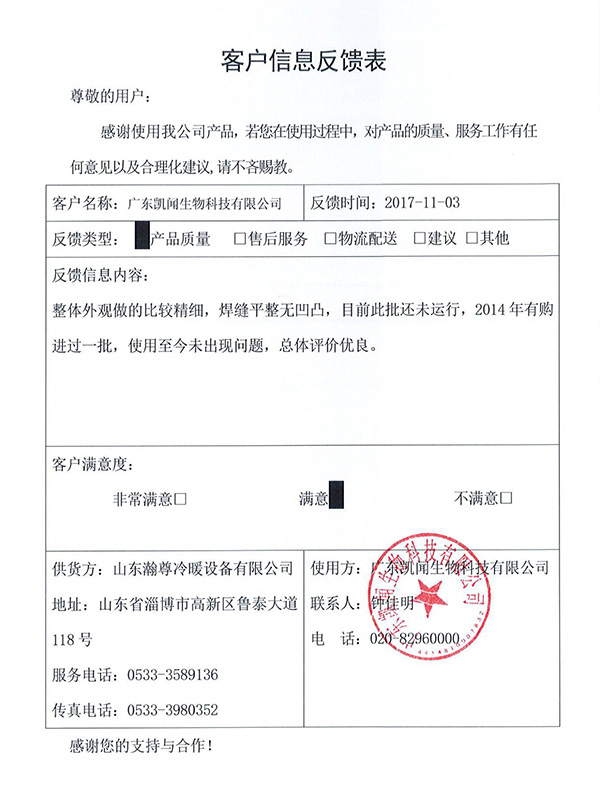 • 山東瀚尊冷暖設備有限公司坐落在美麗的齊國古都---淄博,是一家以換熱(冷凝)產品研發、生產、營銷為一體的企業;自2008年以來,通過與中外知名熱力設備制造商合作以及自主探索和創新,于2010年成功研制生產出了公司第一臺螺旋纏繞管式換熱器;同時,公司依托自身強大的技術力量和研發能力,于2016年成功研制生產無死角無菌級雙管板式換熱器,近年來,公司努力走在中國換熱器行業的前列,致力于創造民族品牌,為用戶提供專業技術支持與服務......